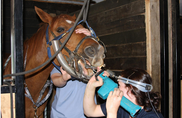 Routine dental exams and floating are of utmost importance to maintain your horse's health and optimize performance. It is recommended that your horse have a dental exam with floating annually. Our veterinarians can make corrections to your horse's teeth using hand floats or a Powerfloat, depending on what work is required. We can perform extractions of wolf teeth, deciduous teeth ("caps") and cheek teeth. In addition, we are capable of taking x-rays of the head to assist with the work up of certain dental diseases.