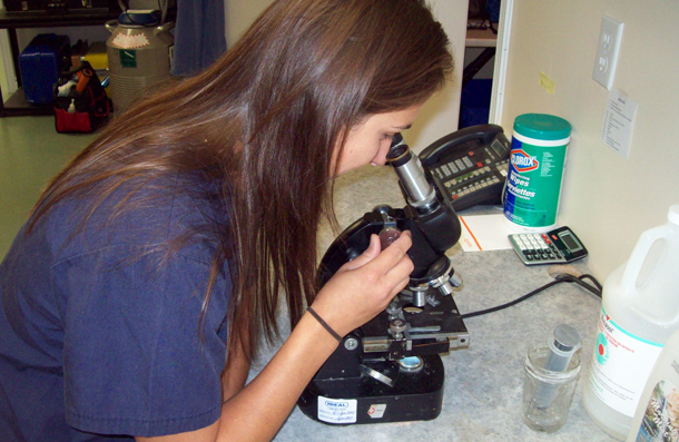 Cytology involves evaluating the cells found in blood, skin masses, the eyes, the uterus or in other bodily fluids. It involves collecting samples and reviewing them on a slide under the microscope. This is a quick, inexpensive and fairly non-evasive diagnostic tool. We can review the slides in-clinic or can send them to a diagnostic lab.